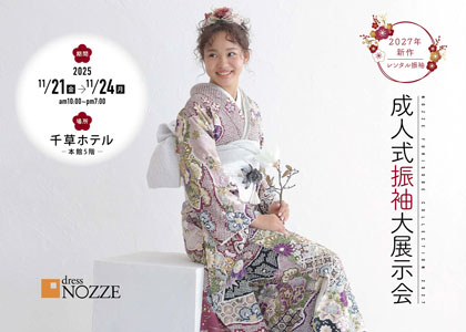 [ドレスノッツエ NEWS]11月の成人式振袖展示会のお知らせドレス・ノッツェでは期間限定の成人式振袖レンタルの展示会を開催いたします。