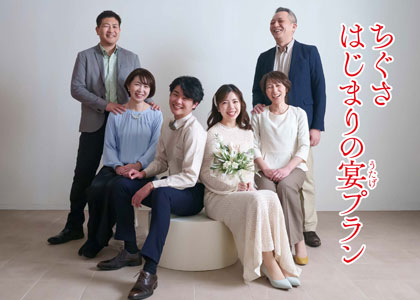 ちぐさはじまりの宴プラン両家顔合わせに会食と記念フォト・ヘアメイク付のプランです。