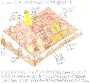 ◆社長賞:クッキーと生クリームといちごの道のケーキ[神奈川県横須賀市・あんずさん(8歳)]