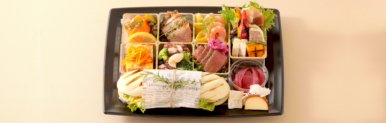 またホテルシェフが一つずつ丁寧に仕上げるお料理やお弁当、焼き菓子ギフトやスイーツなど、様々なシーンに合わせて選べる多彩なテイクアウト商品もご用意しています。