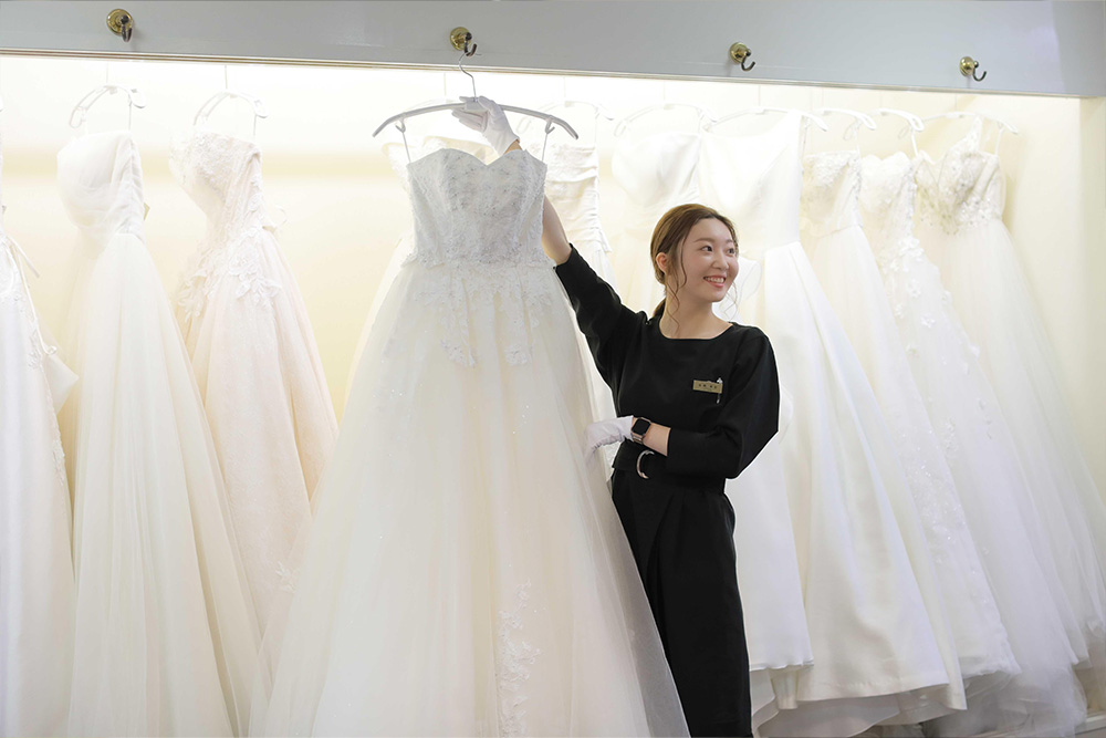 お客様にとっての「この一着」を選ぶ時間は、楽しいながらも、正解に辿り着けるか不安になる時間でもあります。それでも私が提案したドレスを着たお客様から、最高の笑顔をいただくと、間違ってなかったと嬉しくなります。