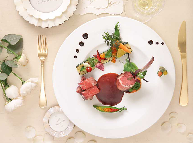 宴会場でお楽しみいただけるシェフによる本格フランス料理のコースフランス料理メニュー
