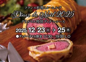 こだわりの食材を集めた至極のクリスマスディナーをご用意いたしました。 一年を締めくくるにふさわしい、千草ホテルの伝統のスペシャリテ・メニューを揃えています。フランス料理ミル・エルブ「クリスマスディナーコース」