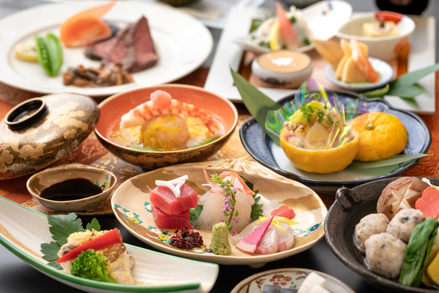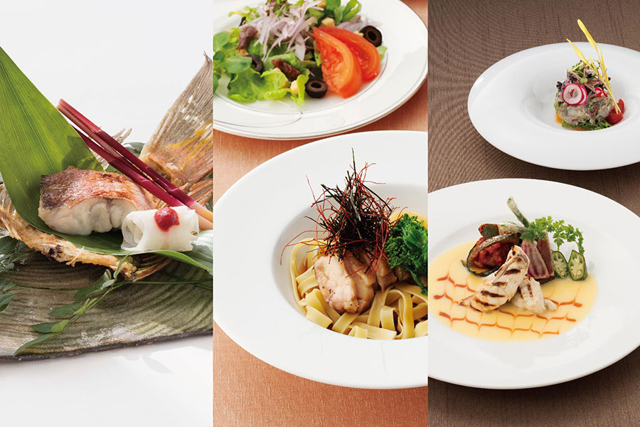食事へのこだわり 料亭の伝統から、上質な美食の時間を演出します。フレンチ、割烹、ダイニングカフェの3つの館内レストランでお気軽にご賞味ください。