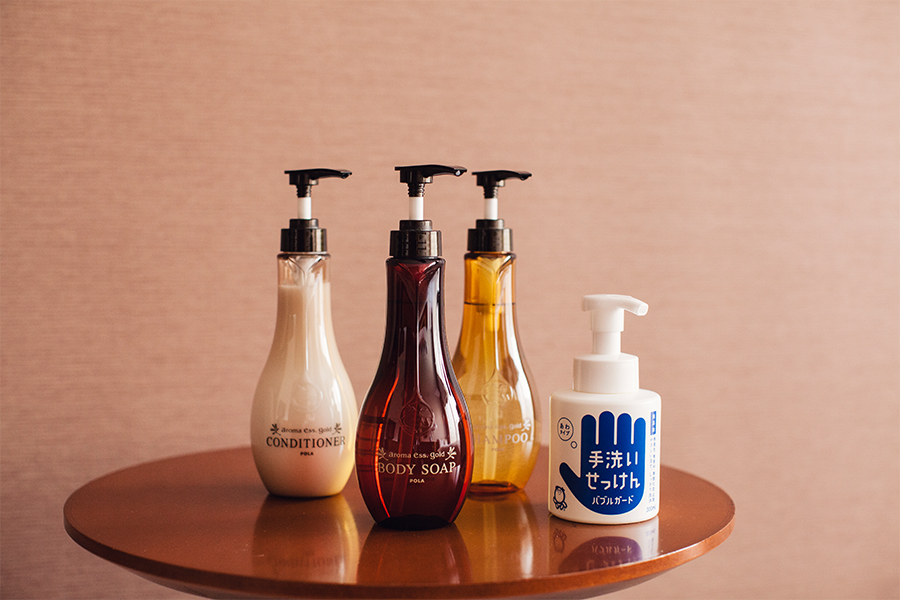 アメニティはエッセンシャルオイル配合のアロマエッセを使用。
